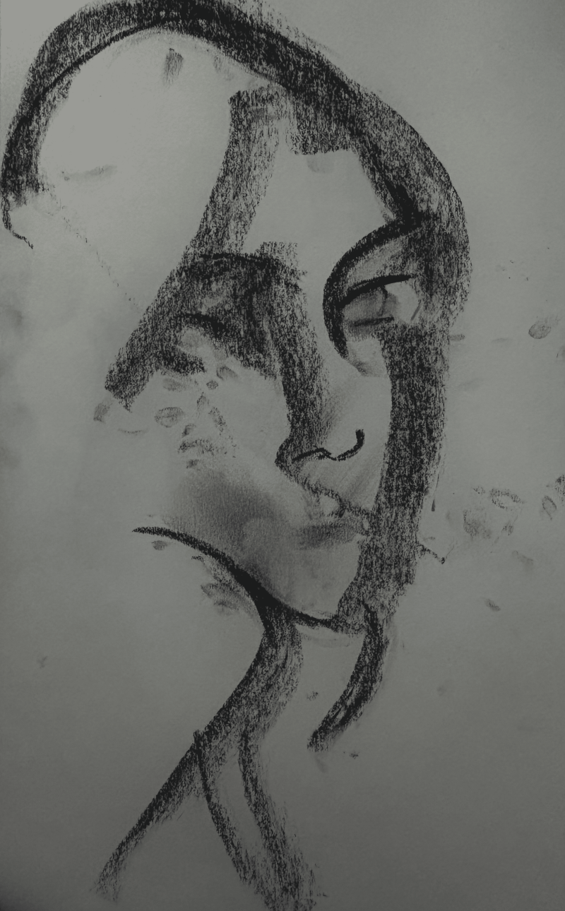 Робота з серії начерків, що досліджує ніжність і чуттєвість жіночого тіла.