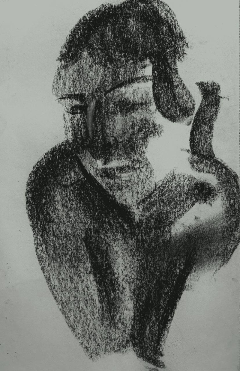 Робота з серії начерків, що досліджує ніжність і чуттєвість жіночого тіла.