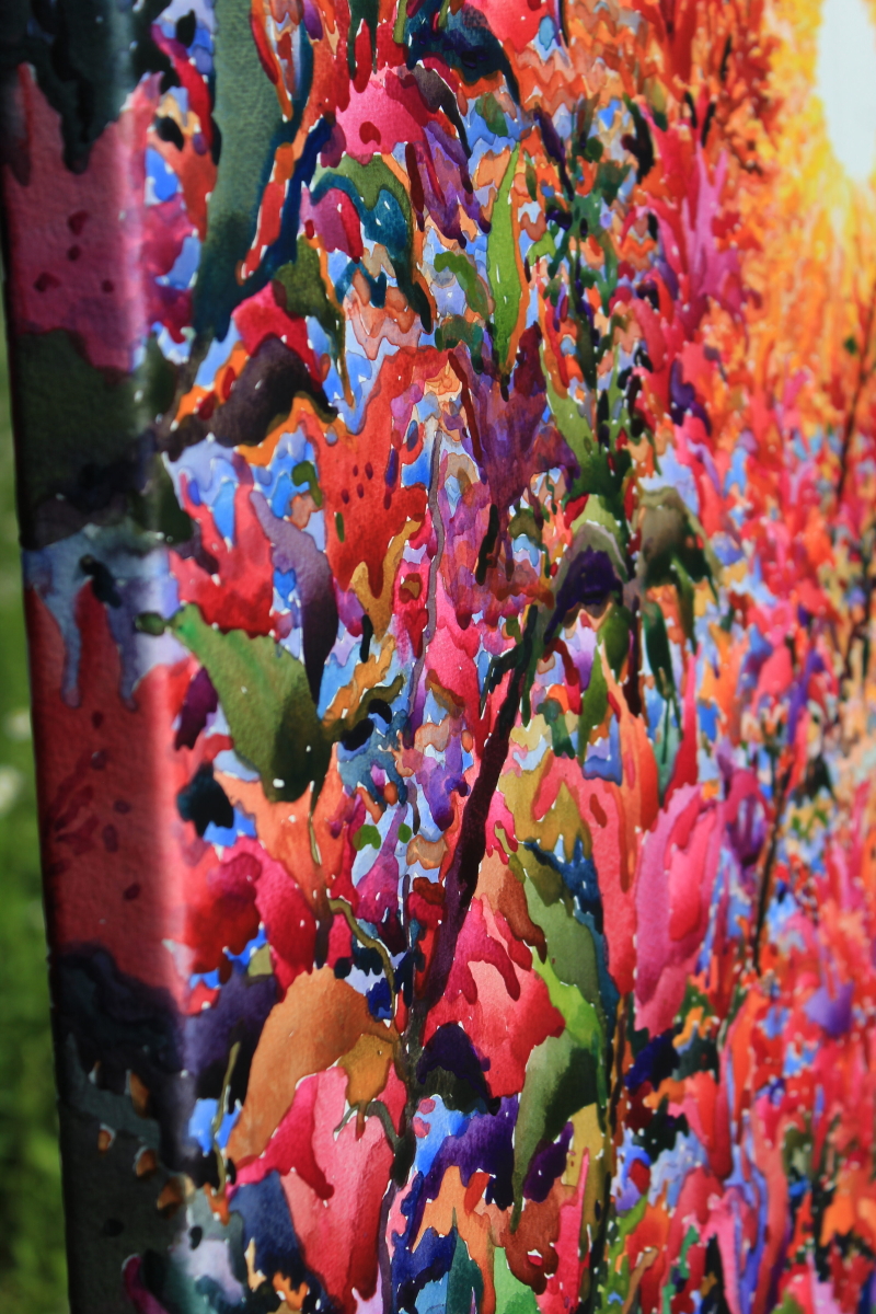 Оригінальна акварельна картина, виконана на акварельному папері Canson, закріпленому на натягнутому полотні, з розфарбованими краями. Не оформлена в раму, але повністю готова до вивішування. На лицьовій стороні, у правому нижньому куті, розміщено підпис автора.