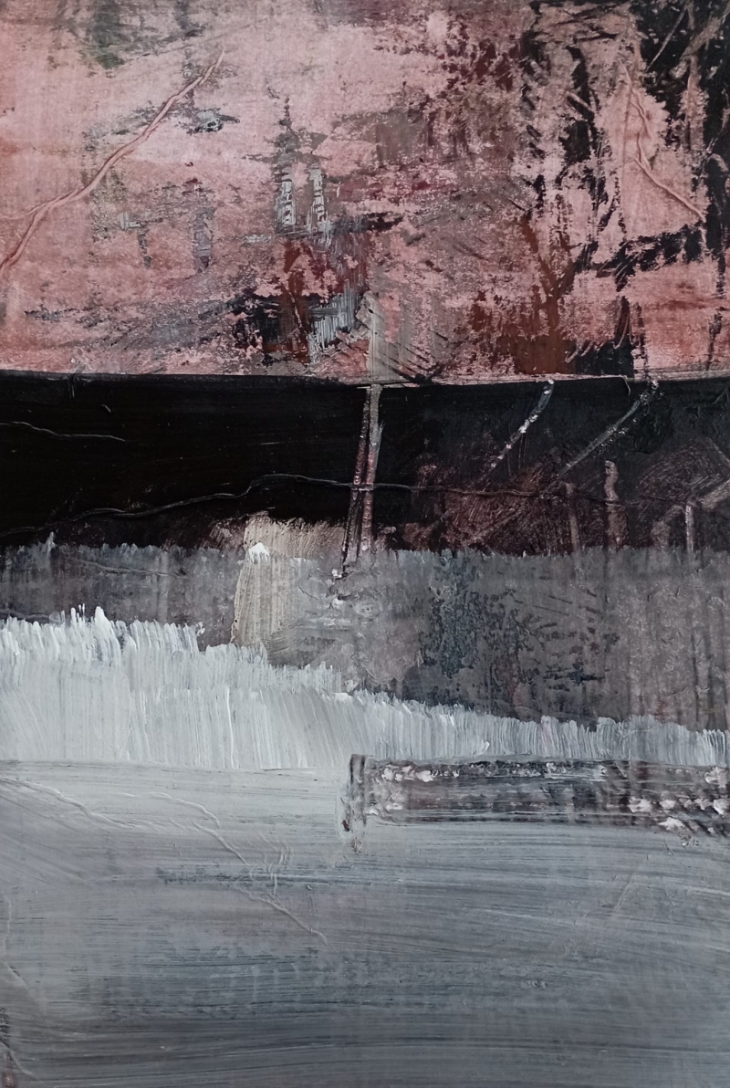 Кожна нова робота постає як пошук композиції, кольорових плям і сенсів без попередніх ескізів — безпосередньо на основній площині. Вибір матеріалів і тем відбувається інтуїтивно, а на завершальних етапах додається критичне осмислення результату, з якого народжується назва та зміст. Використовуючи прийоми абстрактного мистецтва, мисткиня прагне говорити про конкретні, життєво важливі поняття.