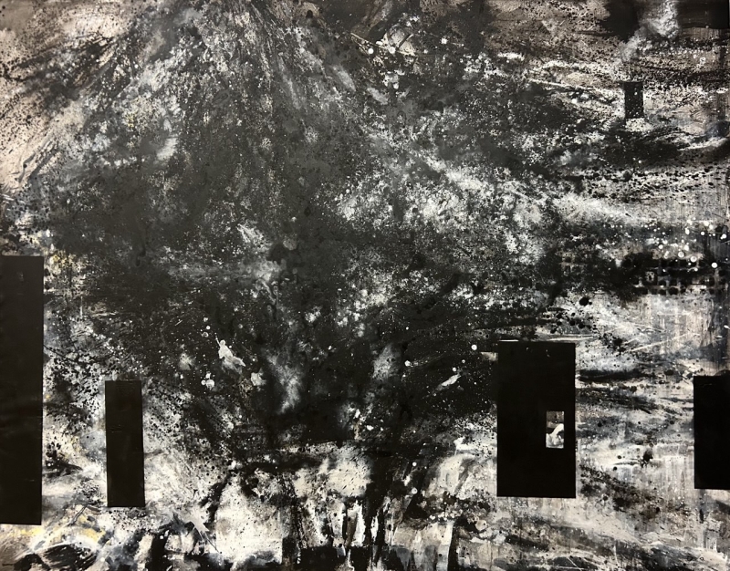 Монохромна абстракція — відлуння часу, де звичний хід життя перетинається з необхідністю постійно балансувати на межі з виживанням.