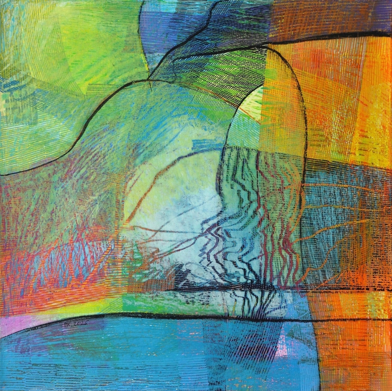 Полотно, папір, акрилові маркери, олійна пастель, лак.