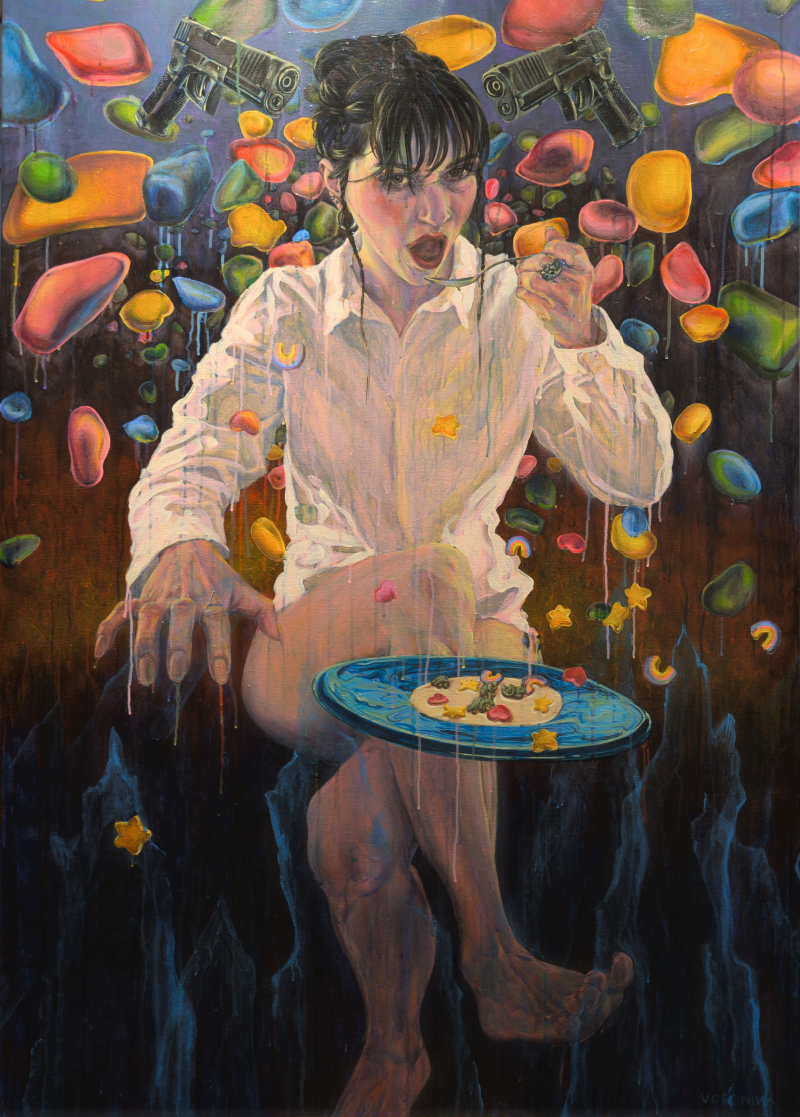 Вірус ситого пацифізму, ті, що не куштували. Добра стара вакцинація, я її не хотіла. Сповідують, мир втрачений у дорозі, мир не бруднить руки, не настане. Уникнене кровопролиття, виблискує нутрощами назовні. Край землі на рівні очей і всі сталі, інклюзивні і етичні. Бездушна нейтральність, сплюндрований героїзм, на що вони сподіваються. Не хочу чути. Чужорідне тіло, паразит з претензією, ніде і одразу, проростає заздрісно швидко. Угода з самим собою, ніколи спати, непричасність, всебічна відповідальність за кожний невиконаний подих, чому не я. Дискримінація і жалість, наївна експлуатація війни, корисна маніпуляція, раби благородних цілей. Не я, не я. Гірка провина, втрачені мрії, є надія, сором’язливі похмілля, змарновані ідеї, замало крові, очікуване насилля, готовий/не готовий, ніколи не готовий. Ненависні дурні, невинні, жалюгідні, я не хотіла знати. Відкладена радість, чиста постіль, наскільки відкладене прощання, хто був першим. Обіцяла побачитися, останній раз, не зустрілася, з ким. Де той день, ми по звірячому проп’ємо, всі наші останні дні оплакуватимемо. Яка моя провина.